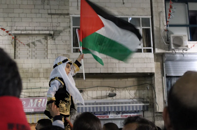 Child waves Palestinian flags in Ramallah as president Abbas addresses the UN General Assembly asking for recognition as state on November 29, 2012. PHOTO: Lena Odgaard